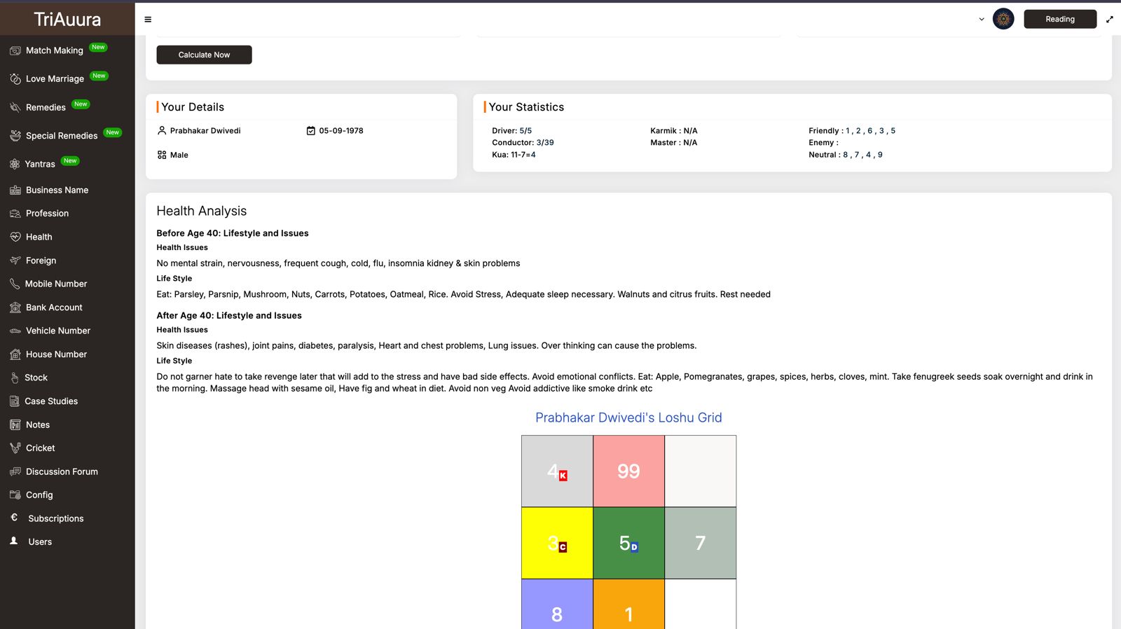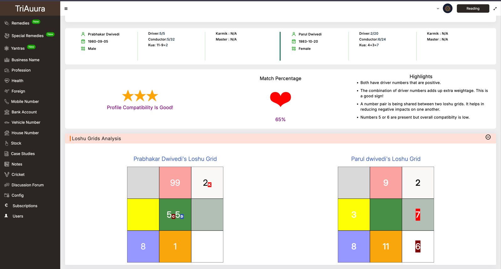 Supports Vedic, Pythagorean, Chaldean, Lo Shu Grid, and Numero Vastu calculations in one platform.